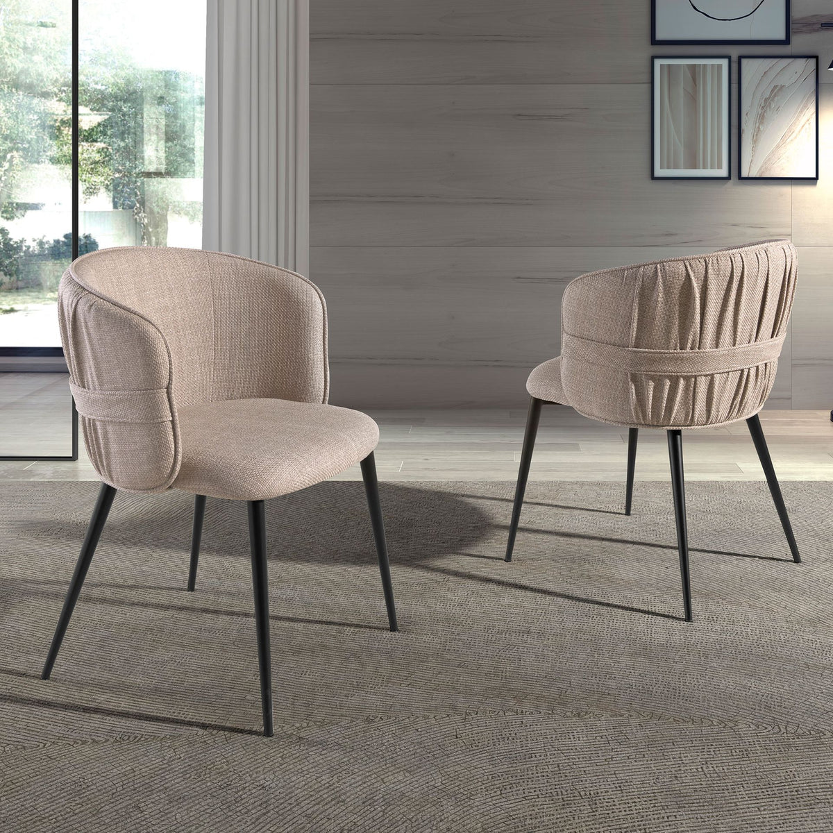 - Theoriginal draped upholsteryon the back of the backrest makes it not only a practical and functional element for everyday use, but also akey piece in the decoration of your dining room.