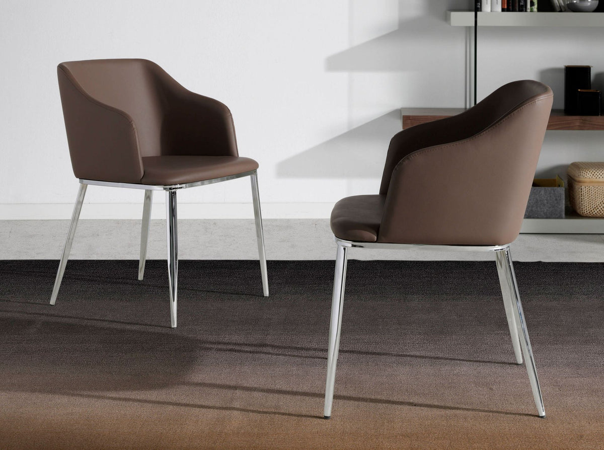 كرسي من الجلد الصناعي البني موديل 4022 من أنجل سيردا إس.إل. كرسي بمساند للذراعين بتصميم عصري مع مقعد ومسند ظهر مكسو بالجلد الصناعي البني. ساقيه المصنوعة من الفولاذ المقاوم للصدأ المطلي بالكروم بتصميم طليعي وخالد ستجعله قطعة أساسية لا غنى عنها لمطبخك أو غرفة طعامك. يجمع هذا الكرسي من أنجل سيردا بين الأسلوب الفريد والشخصي للعلامة التجارية، بالإضافة إلى أعلى درجات الراحة والثبات، بفضل الجودة العالية للتنجيد والهيكل الأصلي لساقيه.