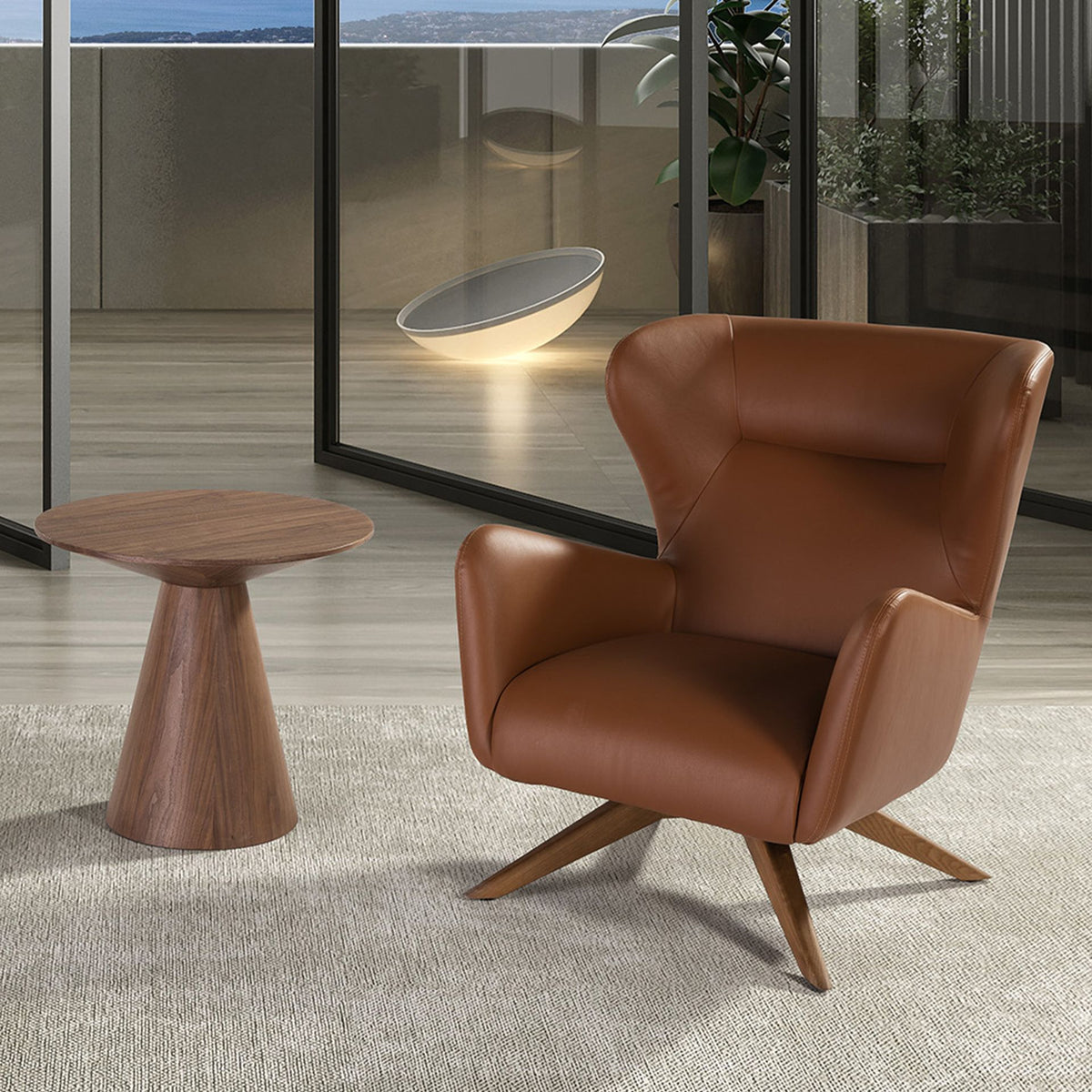 يعتبر مزيج التنجيد بالجلد الصناعي مع الخشب بلون الجوز للأرجل مثالياً لإضفاء الدفء والأناقة على أي مساحة. يوفر لك تنجيد المقعد ومسند الظهر، بالإضافة إلى حشوة الإسفنج البولي يوريثان بكثافة 25 كجم/م³، أقصى درجات الراحة. مع نظام الدوران، يمنحك تلك الإضافات العملية والوظيفية التي تبحث عنها لمنزلك، دون التخلي عن الأناقة القصوى.