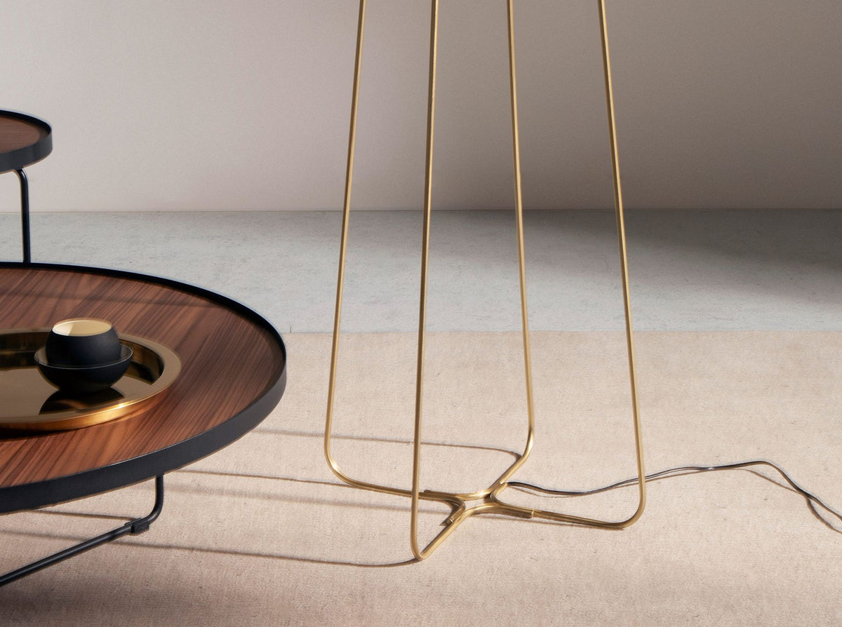مصباح أرضي فاخر من الفولاذ الذهبي والزجاج الأبيض، موديل 8047 من Angel Cerda S.L. مصباح أرضي بقاعدة مصنوعة من الفولاذ الذهبي وتيلة زجاجية مطفأة باللون الأبيض.