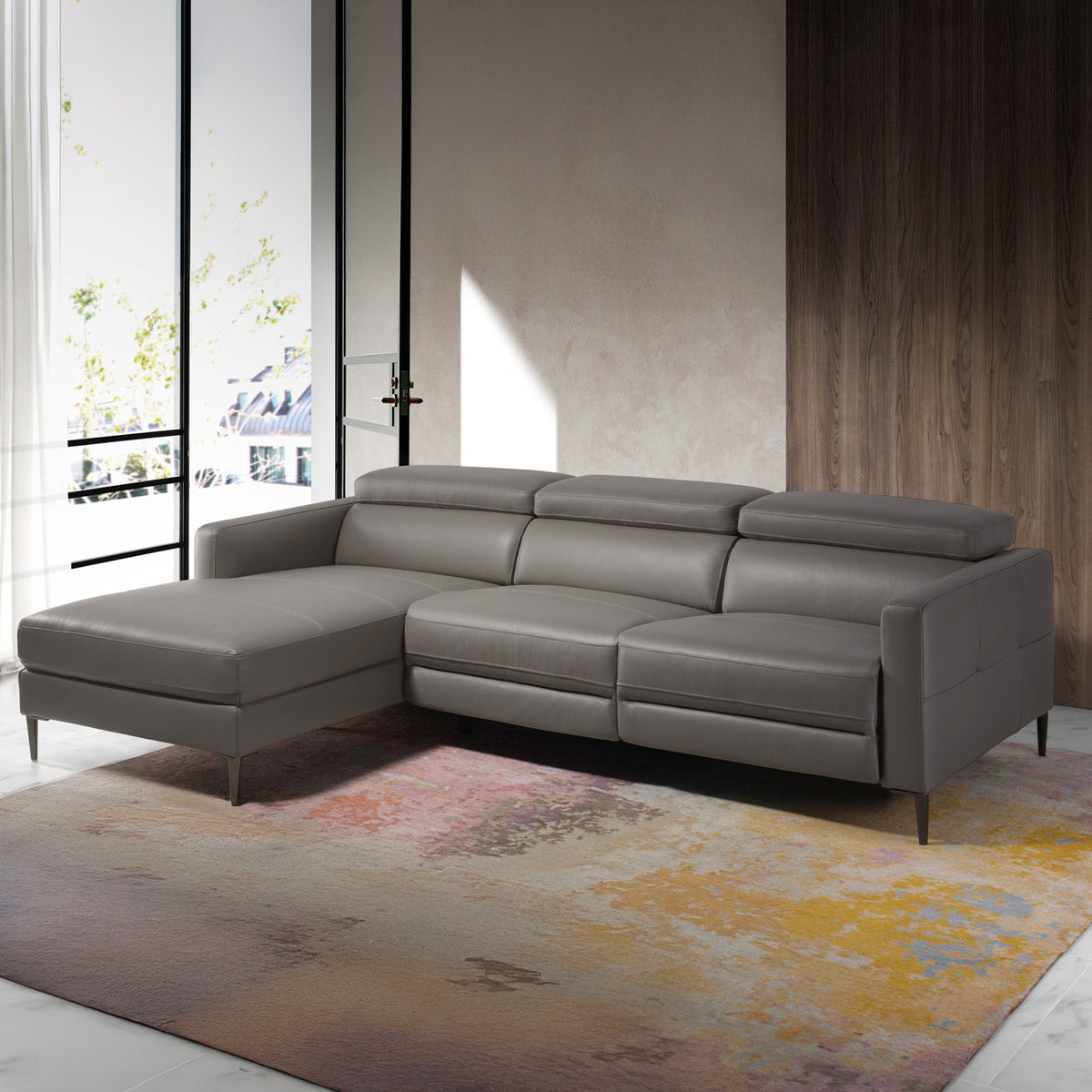 5 seater chaise longue relax left sofa with a modern design upholstered in dark grey cowhide leather with headrest for extra comfort. Both for its style and its darkened stainless steel legs, this sofa will bring a touch of avant-garde and elegance that you are looking for in your home.Its electric relaxation system gives you the extra comfort you need to relax.