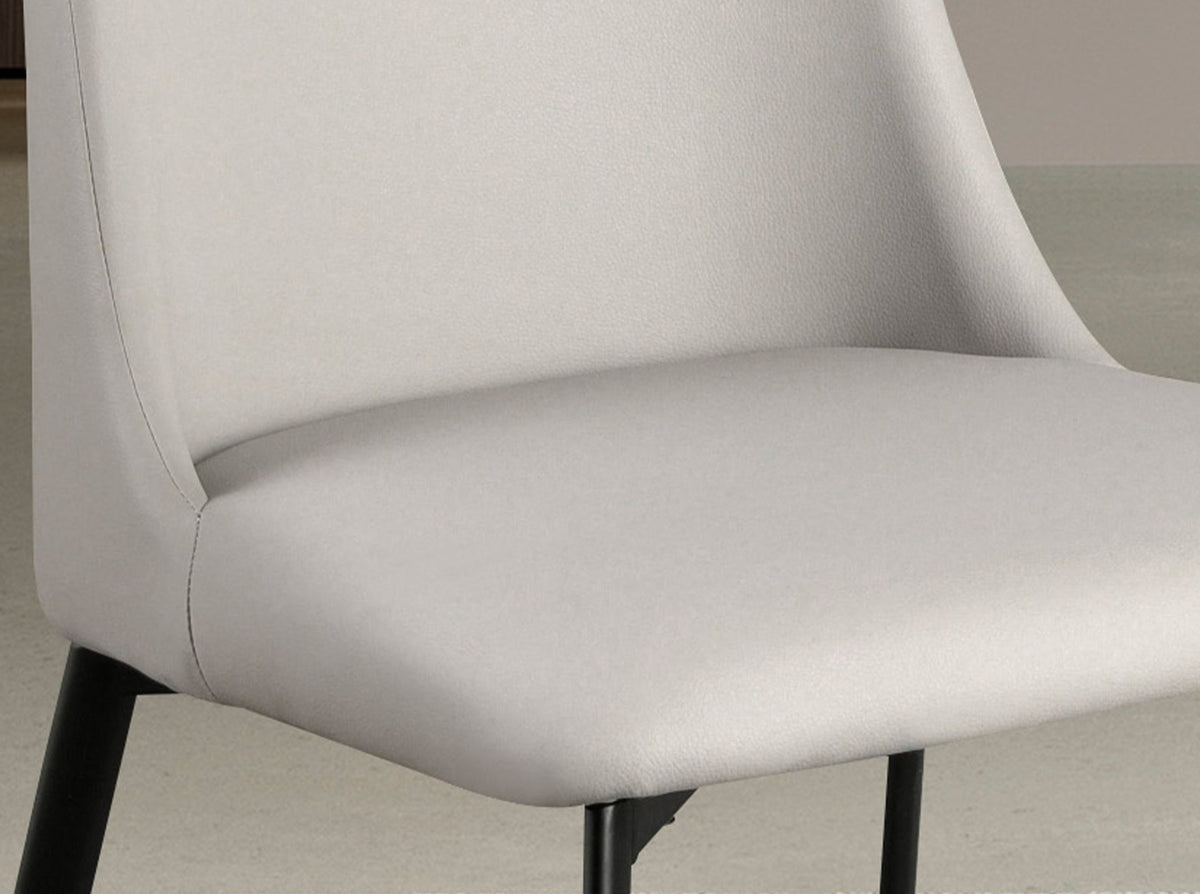 Modern design chairwith seat and back upholstered inlight grey leatherette. Its avant-garde yet timelessblack stainless steellegs will make it a must-have for your kitchen or dining room. Thischair by Angel Cerdácombines theunique and personal styleof the brand, as well as thehighest comfort and stability, thanks to the high quality of its upholstery and the original structure of its legs.