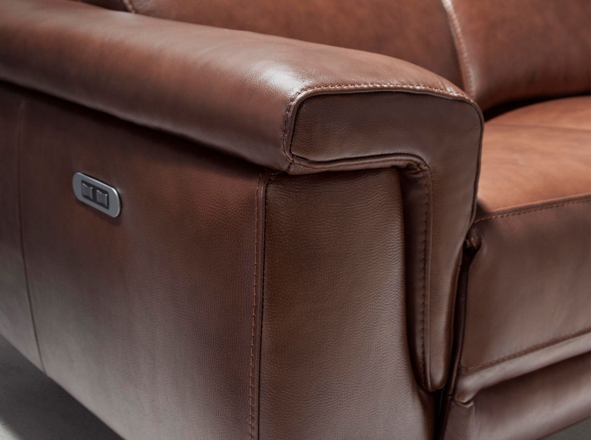 2-seater relaxation sofa with a modern design upholstered in brown cowhide leather with headrest to ensure greater comfort. Both for its style and its black epoxy painted stainless steel legs, this sofa will bring a touch of avant-garde and elegance that you are looking for in your home.Its 2 electric relaxation systems give you the extra comfort you need to relax.