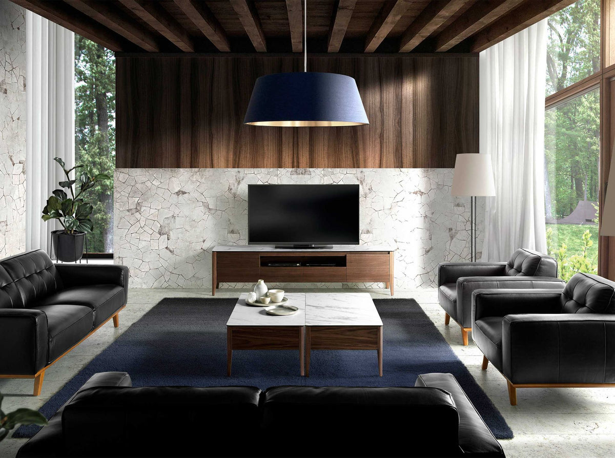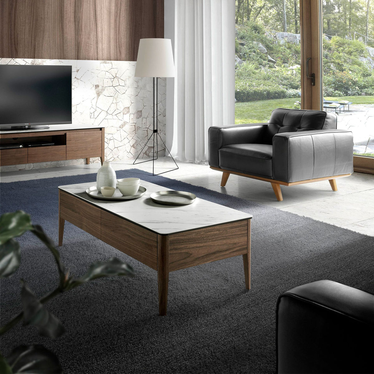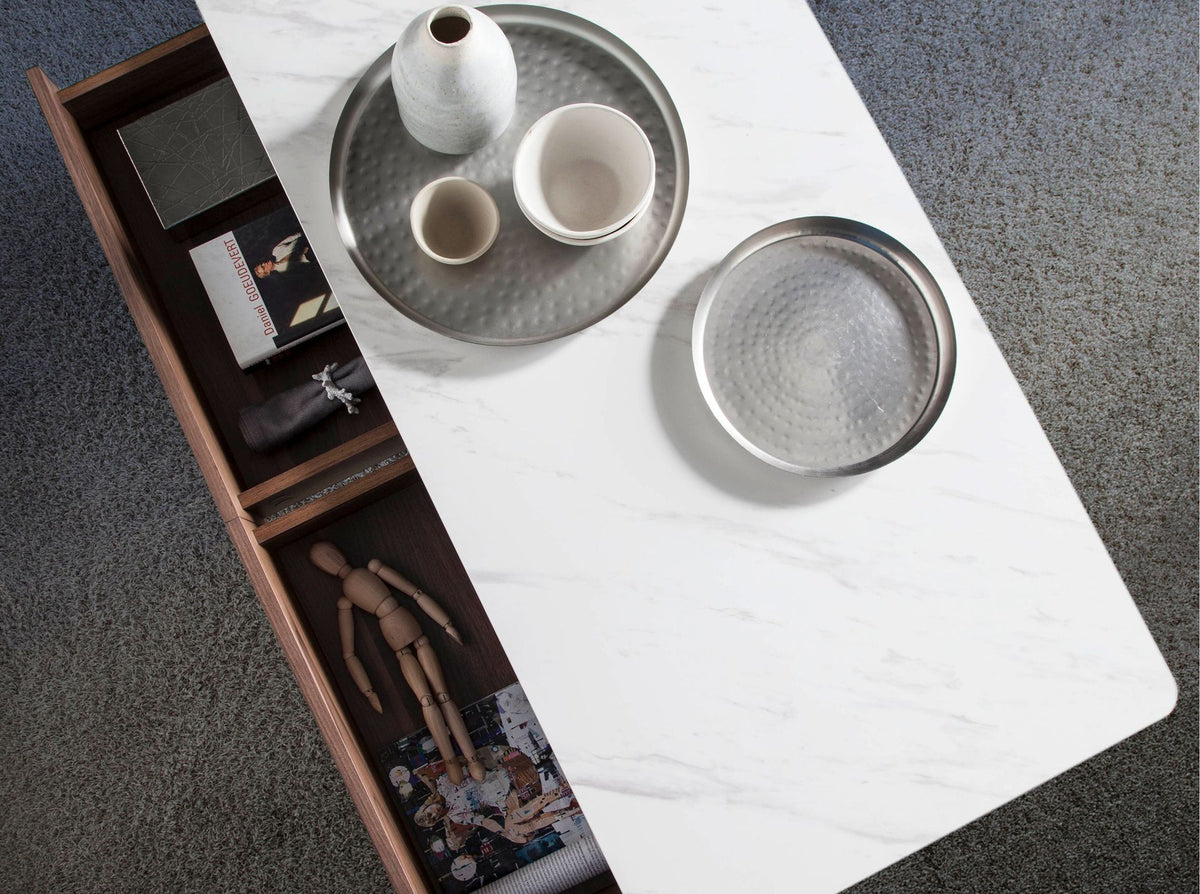 Porcelain marble and walnut rectangular coffee table model 2049 Angel Cerdá S.L.