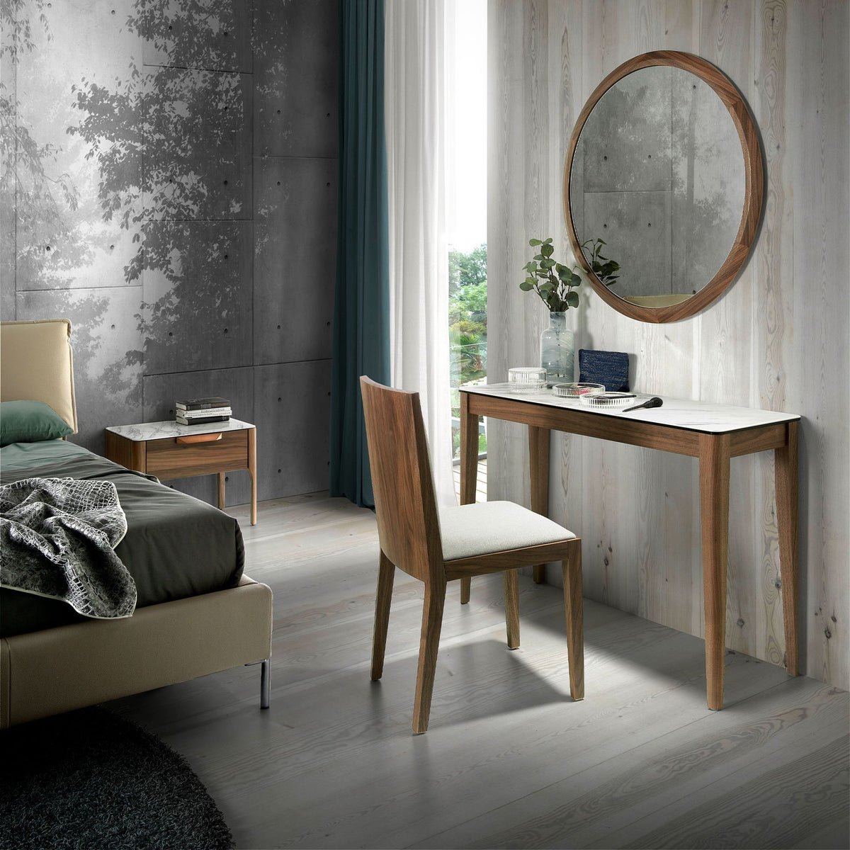 - Its original design with legs made of0.5 mm thick natural walnut veneeris perfect for thetouch of warmth and modern designyou need in your entrance.