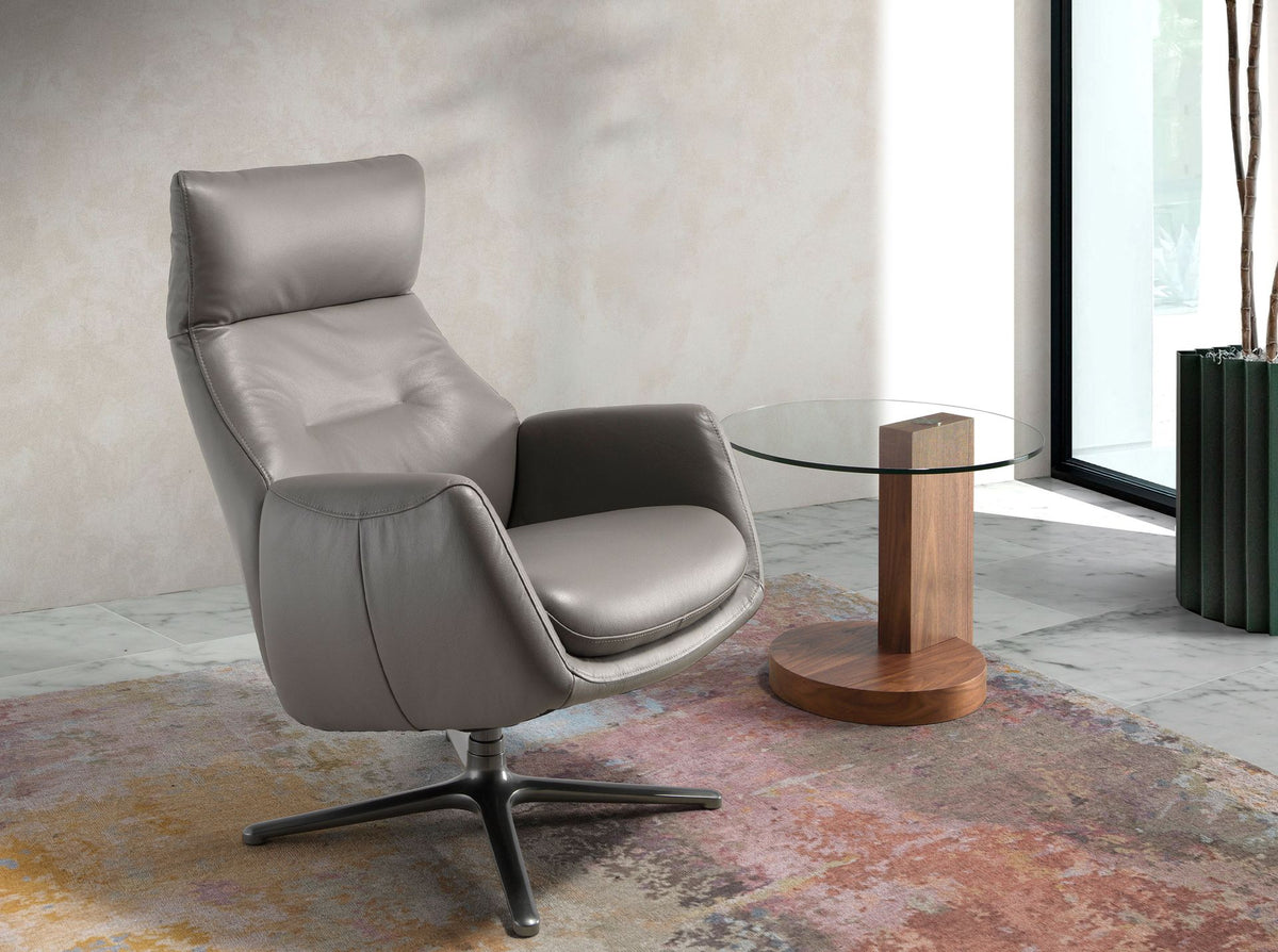 Round tempered glass and walnut corner table model 2036 Angel Cerdá S.L.