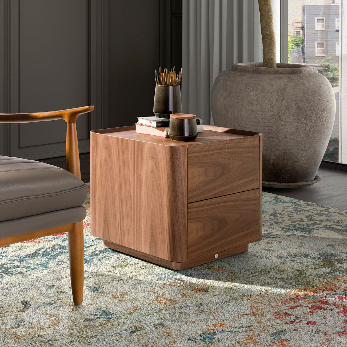 Walnut bedside table with lighting