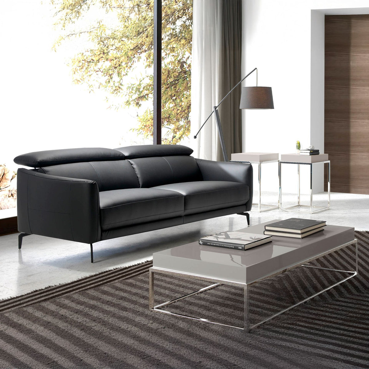 3-seater sofa with a modern design upholstered in black cowhide leather with headrest to ensure greater comfort. Both for its style and its black epoxy painted stainless steel legs, this sofa will bring a touch of avant-garde and elegance that you are looking for in your home.