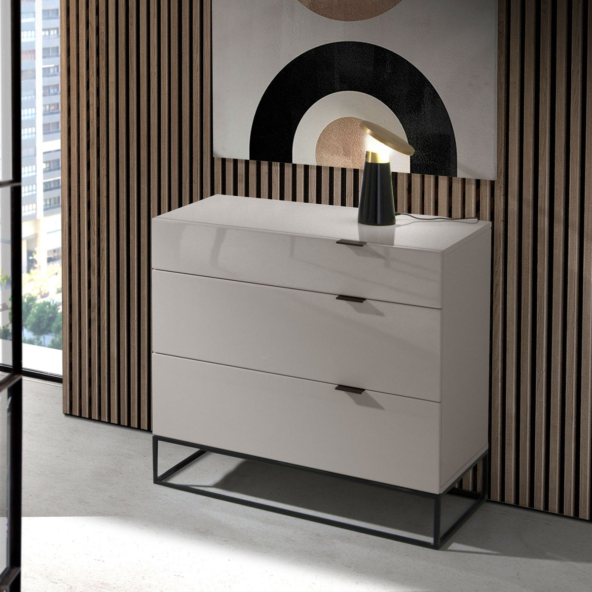 - Thegrey lacquered finishof this chest of drawers will create a greater sense of light and warmth at the same time.