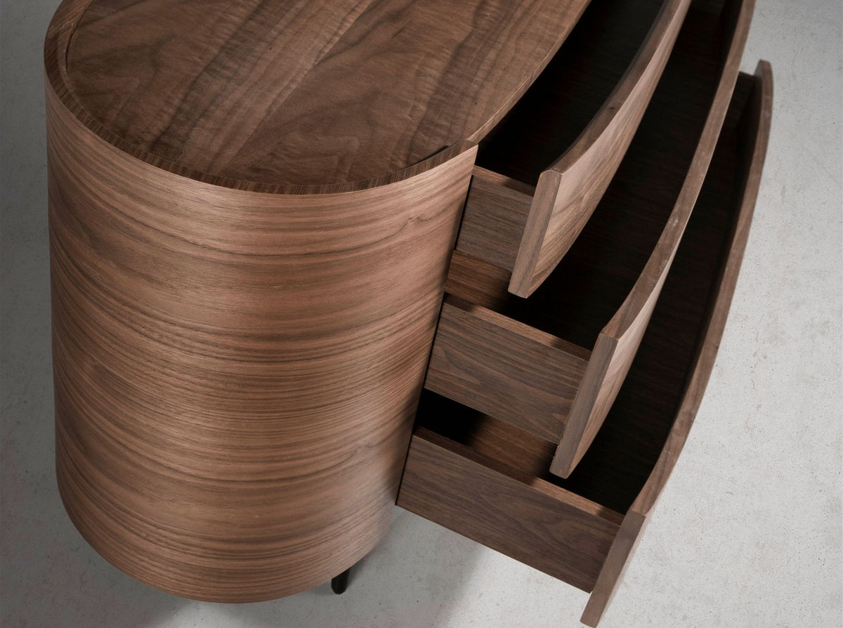 - An elegant and sophisticated chest of drawers in0.5 mm thick natural walnut veneerthat will add a touch of modernity and warmth to your bedroom.