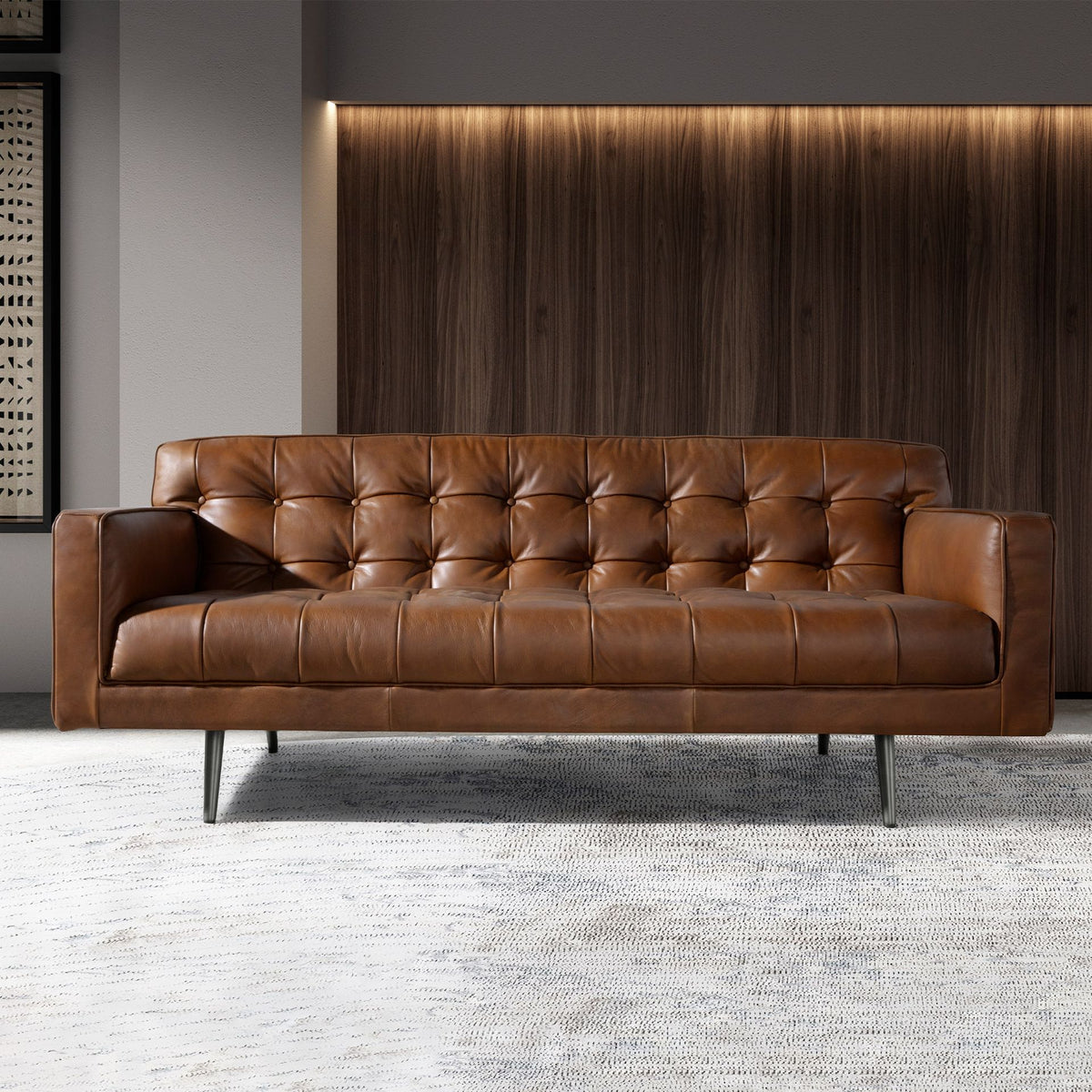 Chester 2 seater sofa of modern design upholstered in dark brown cowhide leather. Both for its style and its darkened stainless steel legs, this sofa will bring a touch of avant-garde and elegance that you are looking for for your home.