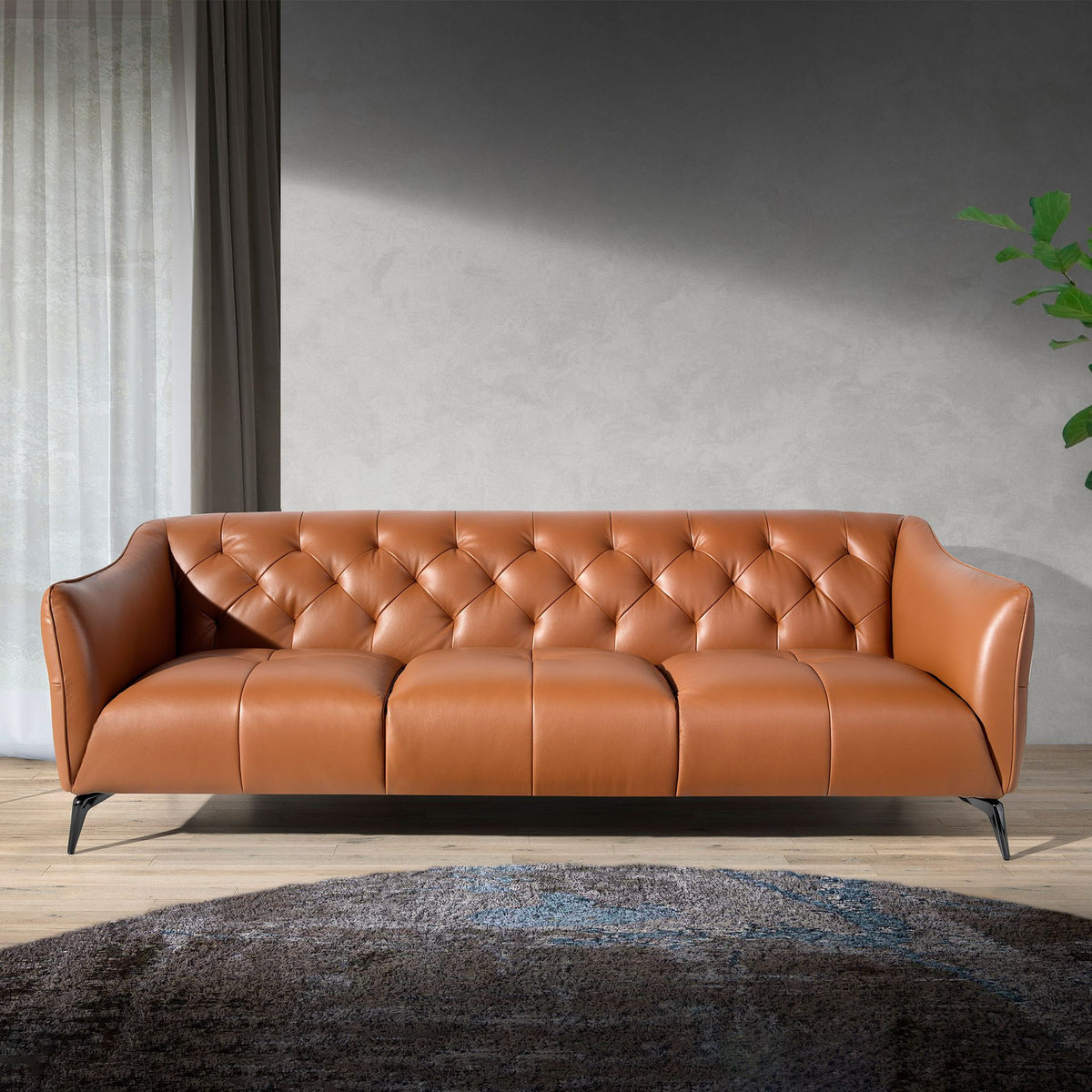 Chester 3 seater sofa of modern design upholstered in brown cowhide leather. Both for its style and its darkened stainless steel legs, this sofa will bring a touch of avant-garde and elegance that you are looking for for your home.