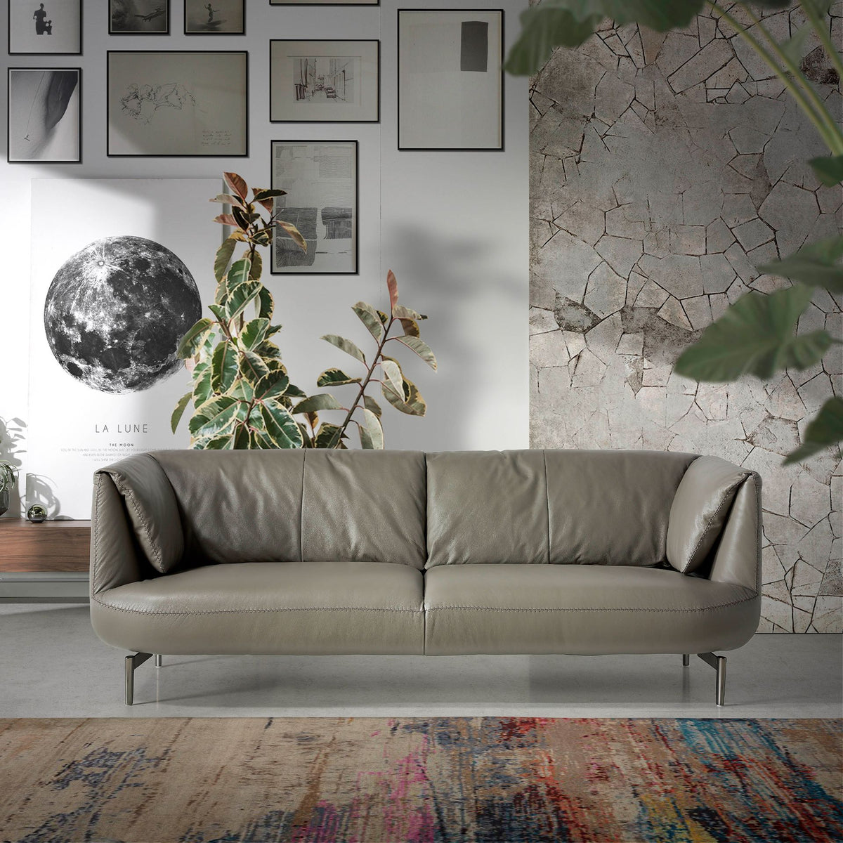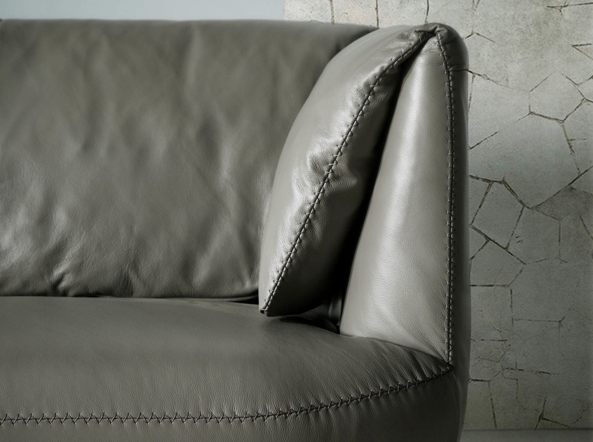 2 seater sofa of modern design upholstered in dark grey cowhide leather. Both for its style and its polished stainless steel legs, this sofa will bring the touch of avant-garde and elegance that you are looking for for your home.