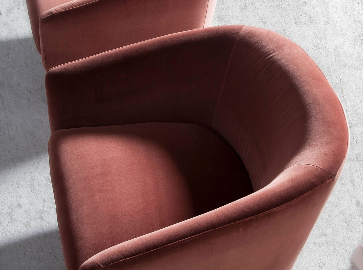 Peach velvet swivel armchair