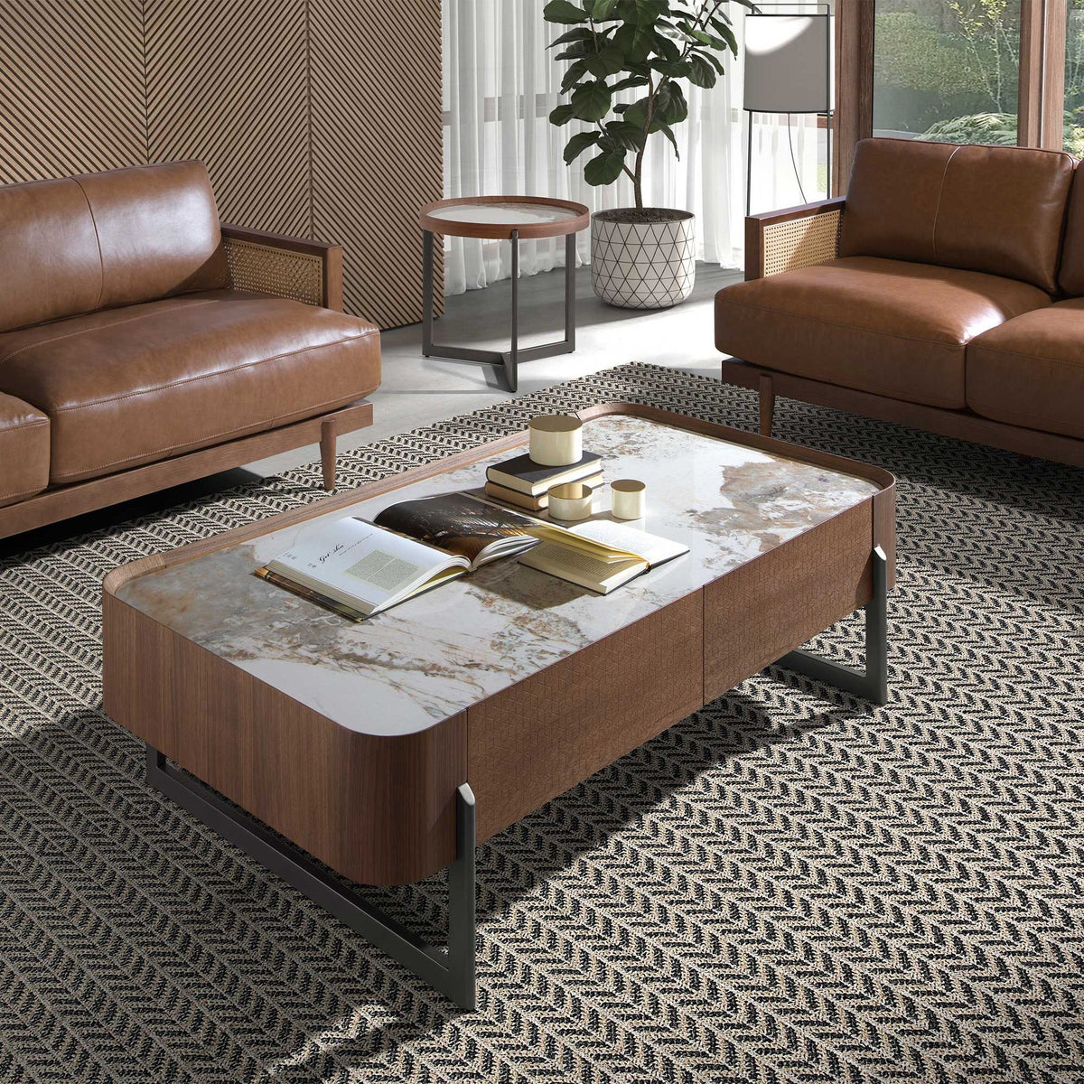 Rectangular coffee table in porcelain marble, walnut and dark metallic steel model 2131 Angel Cerdá S.L.