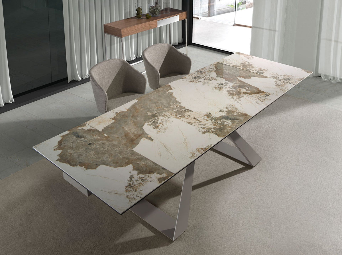 Rectangular extending dining table in porcelain marble and taupe grey steel model 1117 Angel Cerdá S.L.