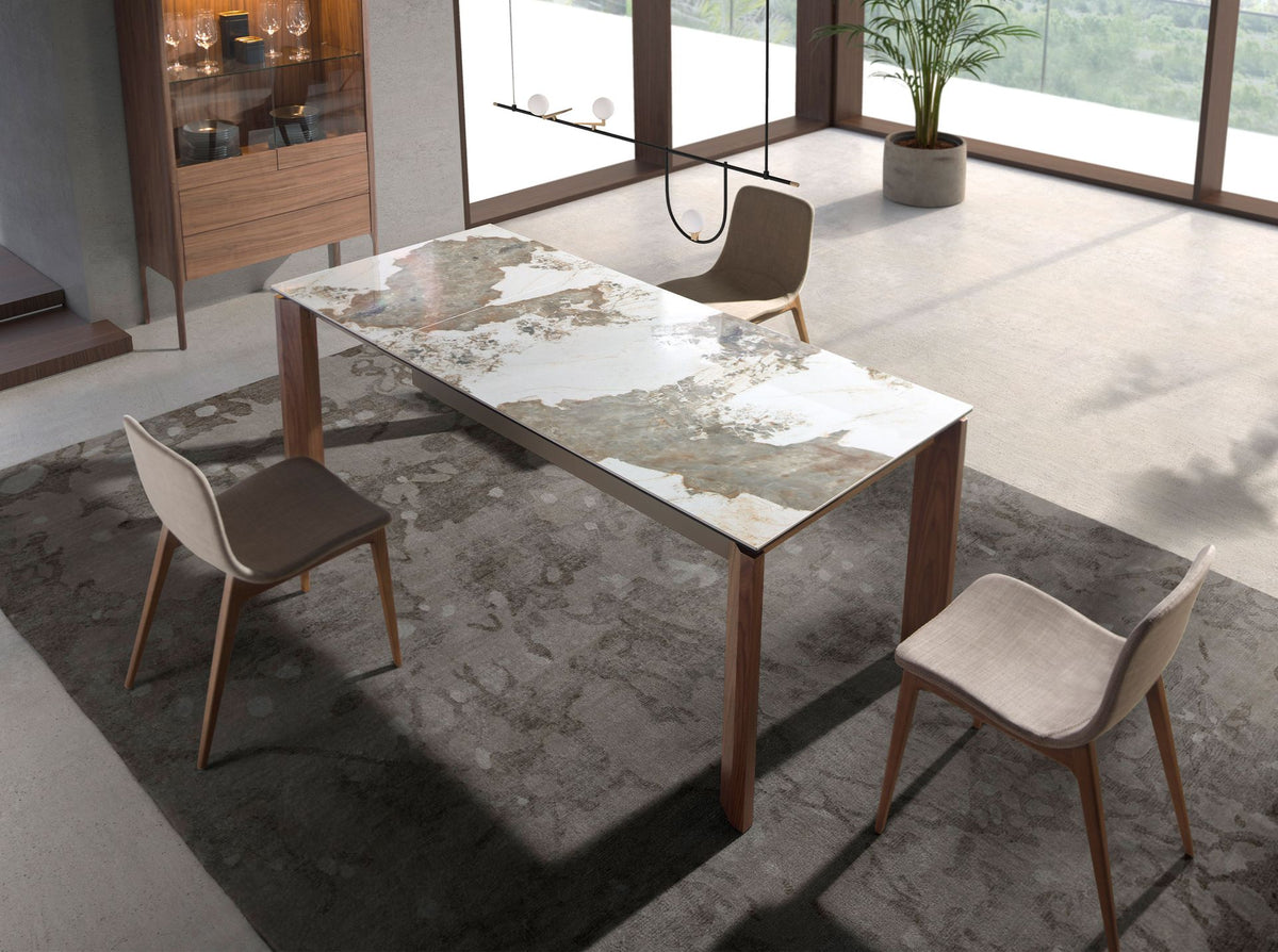 Rectangular porcelain marble and walnut extending dining table model 1118 Angel Cerdá S.L.