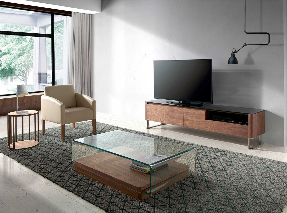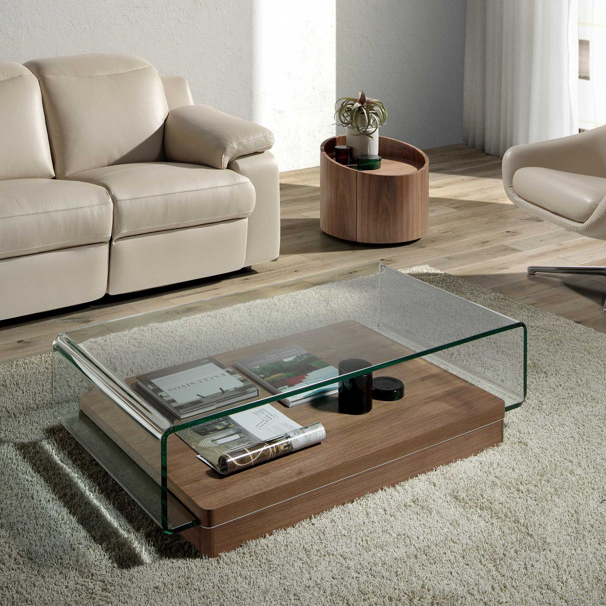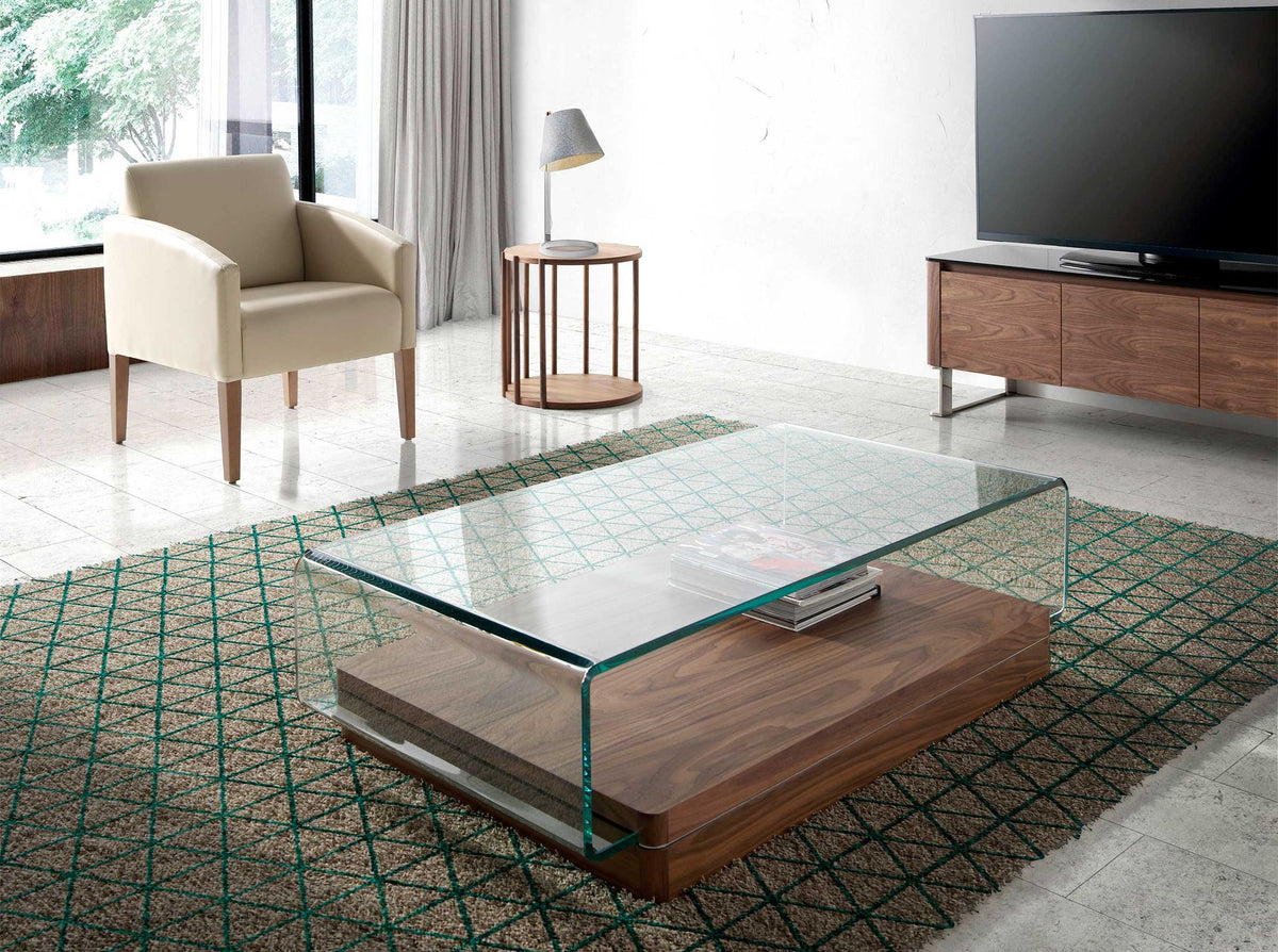 Rectangular tempered glass and walnut coffee table model 2004 Angel Cerdá S.L.