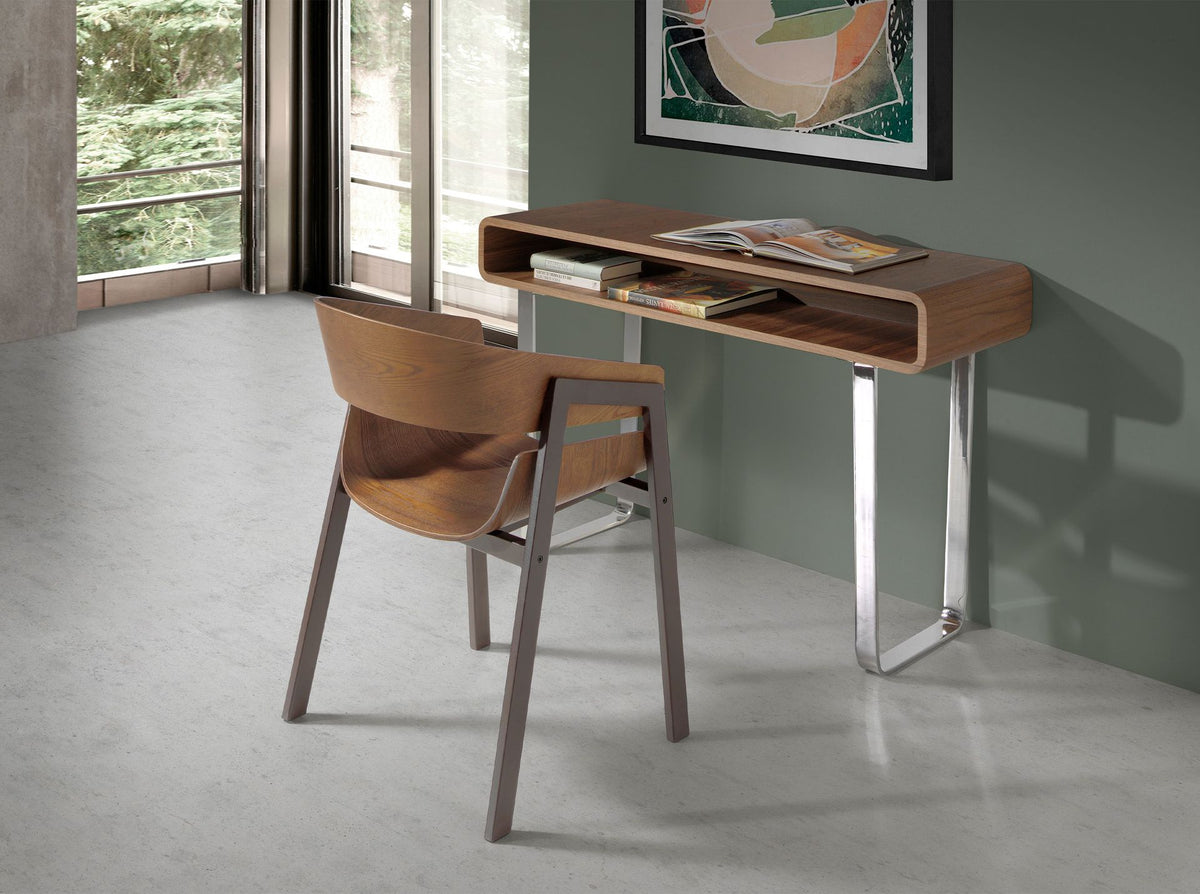 Modern rectangular console tablemade ofnatural walnut veneered wood.Its structure ofchromed stainless steel legs, provides the modern and avant-garde touch that you are looking for for your home.