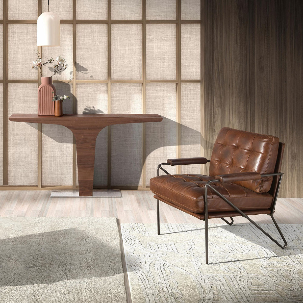 Rectangular modern design console tablemade ofnatural walnut veneered wood. Itschromed stainless steel baseadds the touch of modernity and avant-garde that you are looking for for your home.