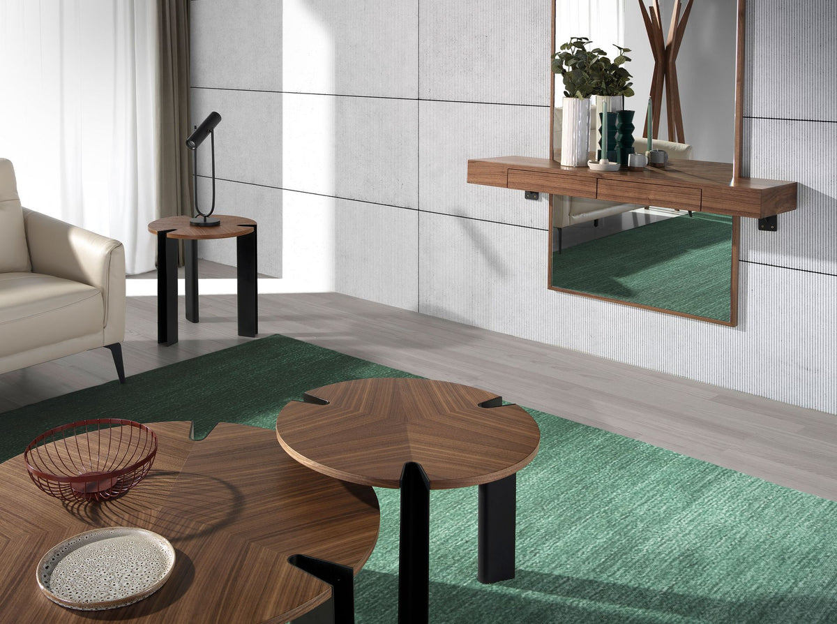 - Its elegantshelf in natural walnut veneerhasstorage space with 2 drawers, which will allow you to keep everything in order, as well as having a perfect auxiliary piece of furniture for the entrance area.