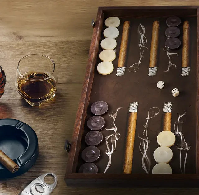 تتميز هذه المجموعة بسطح لعب مصنوع يدويًا باستخدام تقنية الماركيتري، مع تفاصيل دقيقة تضفي لمسة فنية فريدة. الإطار الخارجي مصنوع من خشب عالي الجودة، مما يضمن المتانة والجمال.