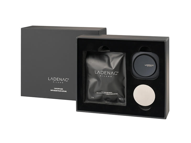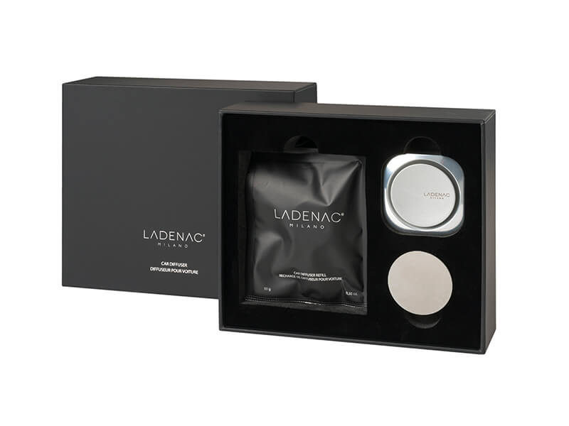 موزع عطر السيارة من لاديناك هو تحفة فنية تجمع بين الفخامة والتصميم العصري. مصنوع من الألمنيوم المؤكسد، ويتوفر بلونين أنيقين: الأسود المطفي والفضي اللامع. يضفي هذا الموزع لمسة راقية على مقصورة سيارتك.