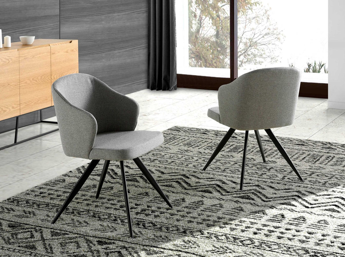كرسي من القماش الرمادي موديل 4057 من أنخيل ثيردا إس. إل. كرسي بمساند ذراعين بتصميم عصري مع مقعد ومسند ظهر مكسوين بقماش رمادي. ستجعل منه أرجله المصنوعة من الفولاذ المقاوم للصدأ الأسود ذات الطابع الطليعي والخالد قطعة لا غنى عنها في مطبخك أو غرفة طعامك. يجمع هذا الكرسي من أنخيل ثيردا بين الأسلوب الفريد والشخصي للعلامة التجارية، بالإضافة إلى أعلى درجات الراحة والثبات، وذلك بفضل الجودة العالية للتنجيد والهيكل الأصيل لأرجله.