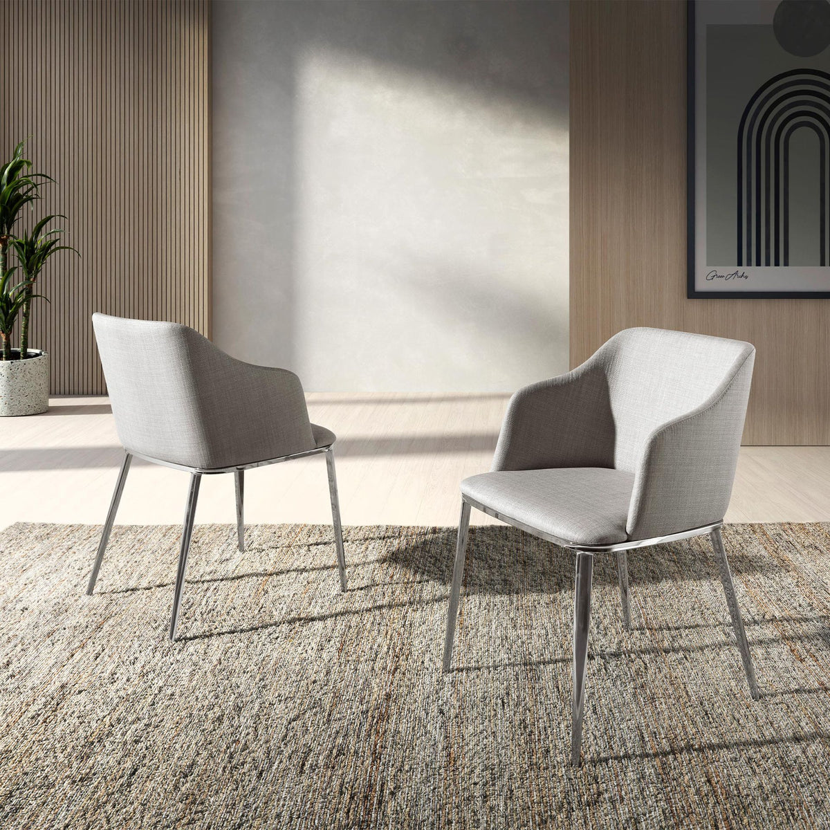قصى درجات الراحة. فريدة وبها الكثير من الشخصية، جميع كراسي غرفة الطعام لدينا مصنوعةمن أعلى جودة للمواد، مما يضمن أثاثًا عمليًا وطويل الأمد. تم تصميم كراسي أنخيل ثيردا بالكامل لتستمتع بها وتضيف لمسة من الأناقة والذوق إلى أي مساحة. تشكل مجموعتنا من كراسي غرفة الطعام المنجدة بالقماشخيارًا رائعًا لتأثيث وتزيين منزلك. عند دمجها مع أنواع أخرى من المواد مثل الفولاذ المطلي بالكروم أو الفولاذ الأسود أو الخشب، فهي عنصر أساسي لتحويل غرفة طعامك أو معيشتك أو مطبخك إلى بيئة متعددة الاستخدامات وزخرفية، بالإضافة إلى كونها عملية ليومك العادي. كراسي منجدة وعصرية ومصممة خصيصًا لإبراز الهواء الطليعيالذي يميز أثاثنا. يجمع كرسي التصميم العصري هذا من أنخيل ثيردا بين الأسلوب الفريد والشخصي للعلامة التجارية، بالإضافةإلى أعلى درجات الراحة والثبات، وذلك بفضل التنجيد الناعم والهيكل الأصيل للأرجل. قطعة تصميم لن ترغب في أن تخلو منها غرفة طعامك.