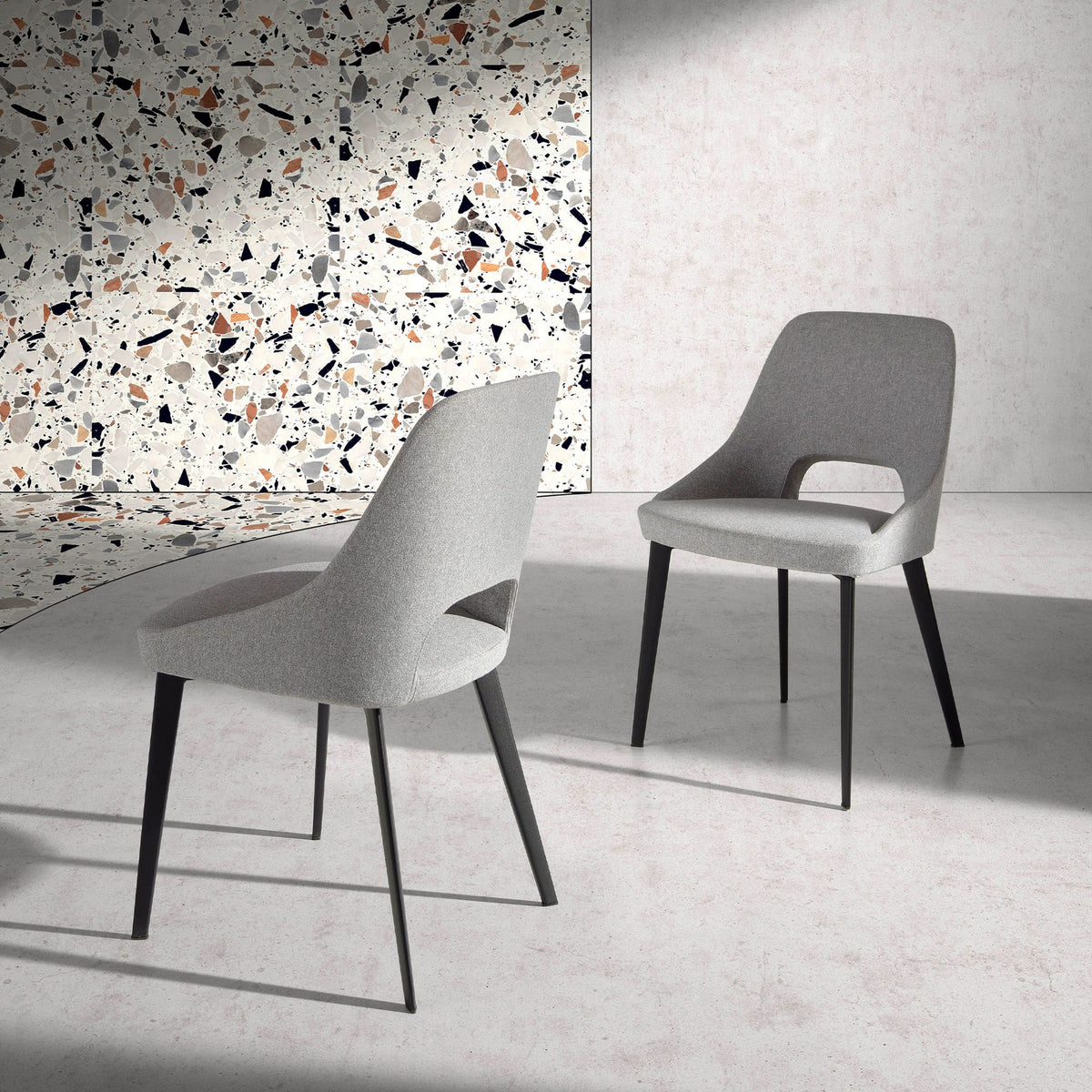كرسي بتصميم عصري بمقعد وظهر مكسوين بقماش رمادي. ستجعل منه أرجله المصنوعة من الفولاذ المقاوم للصدأ الأسود ذات الطابع الطليعي والخالد قطعة أساسية لا غنى عنها في مطبخك أو غرفة طعامك. يجمع هذا الكرسي من أنجل سيردا بين الأسلوب الفريد والشخصي للعلامة التجارية، بالإضافة إلى أعلى درجات الراحة والثبات، وذلك بفضل الجودة العالية للتنجيد والهيكل الأصيل لأرجله.