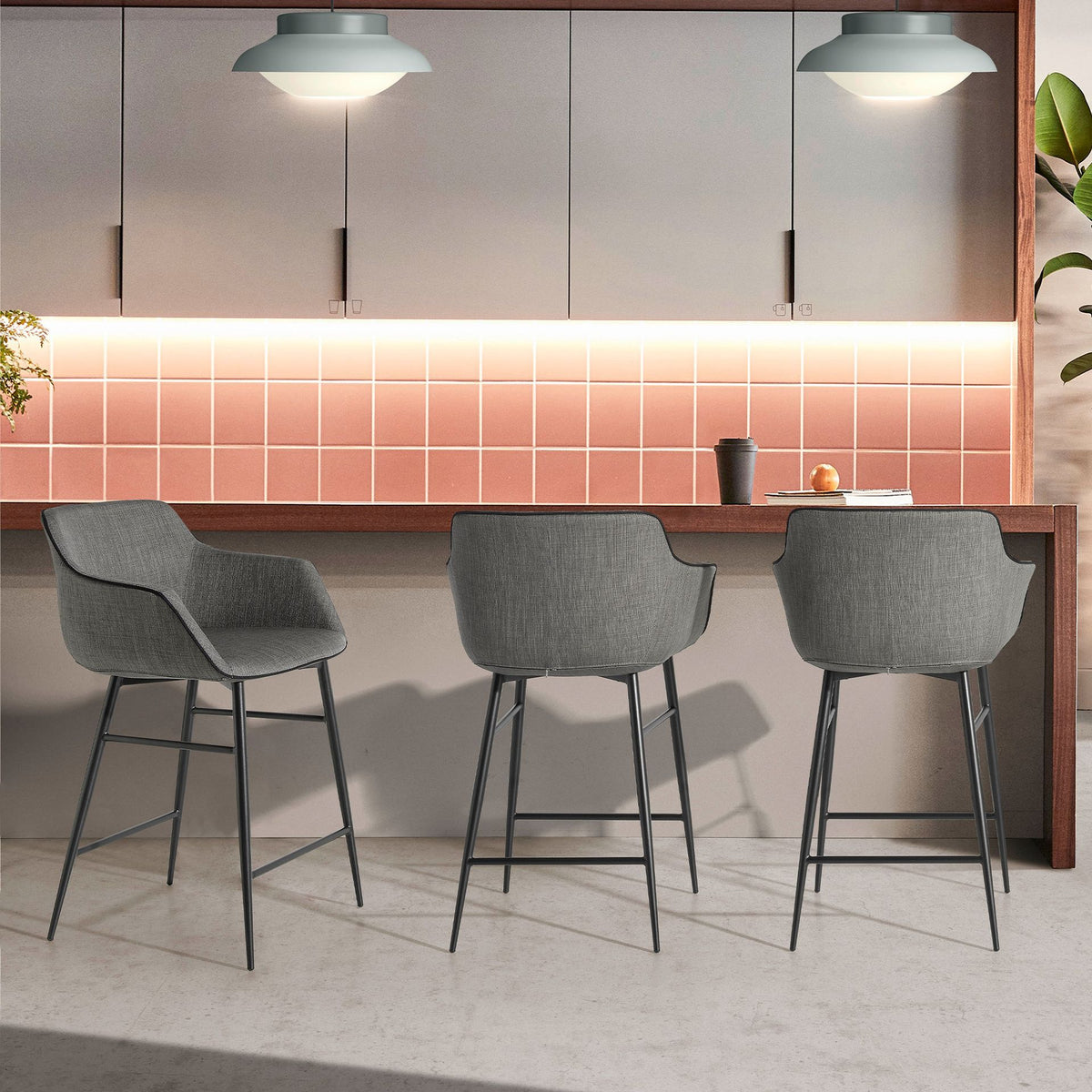 مقعد عصري ذو مساند للأذرع، مع مقعد ومسند ظهر مُنجَّد بقماش رمادي. ساقاه المصنوعتان من الفولاذ المقاوم للصدأ الأسود، بأسلوب طليعي معاصر وخالد، ستجعله قطعة أساسية لا غنى عنها في مطبخك أو غرفة طعامك. يجمع هذا المقعد من أنجل سيردا بين الأسلوب الفريد والشخصي للعلامة التجارية، بالإضافة إلى أعلى درجات الراحة والثبات، وذلك بفضل الجودة العالية لتنجيده والتصميم الأصيل لساقيه.