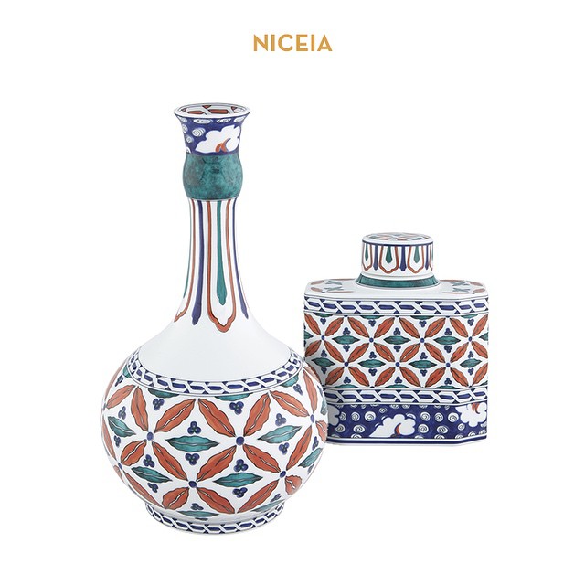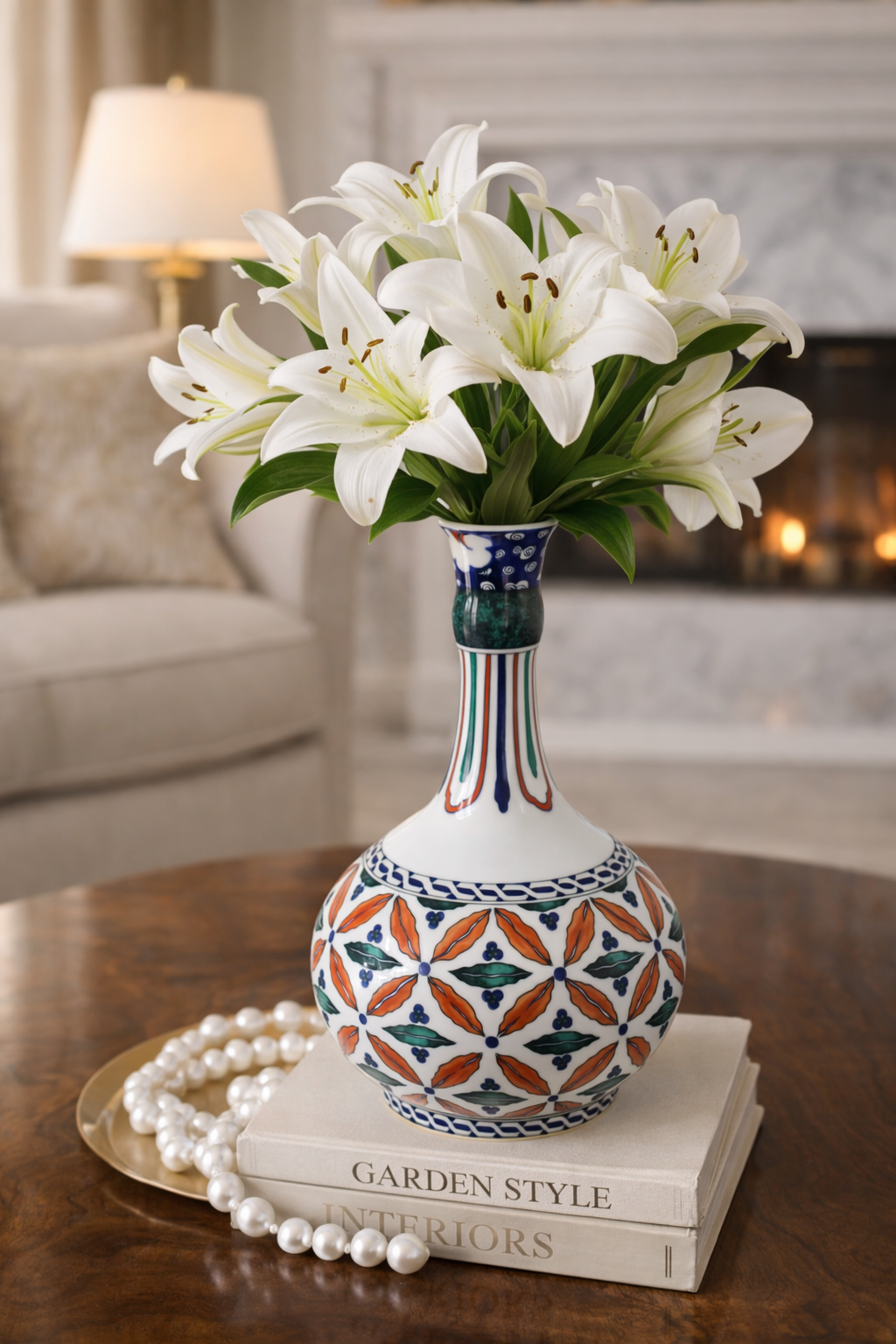 مزهرية مستوحى من طبق خزفي إزنيكي الرائع بين القرنين الخامس عشر والسابع عشر.