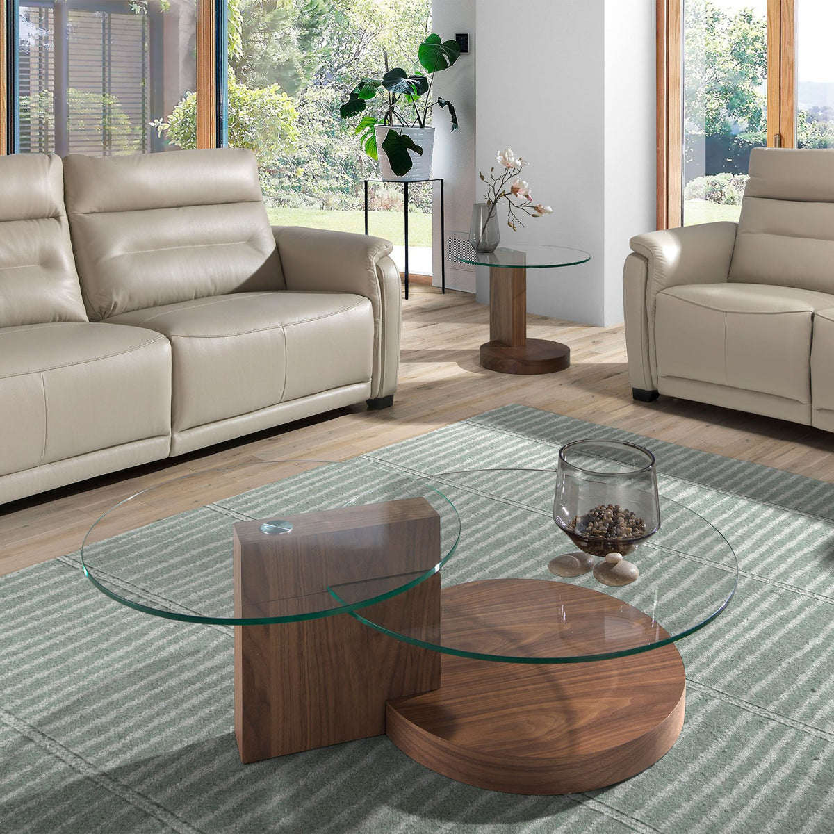 سطح طاولة المقهى الجانبية هذه المصنوع من الزجاج المقسى يضفي رحابة وإشراقًا على الغرفة، مما يجعلها قطعة أساسية في ديكور رفيع المستوى لمعيشتك. بساطة وأناقة الهيكل الخشبي المكسو بقشرة جوز طبيعي بسمك 0.5 ملم لهذه الطاولة تجعلها مثالية لخلق أجواء عصرية وأنيقة.