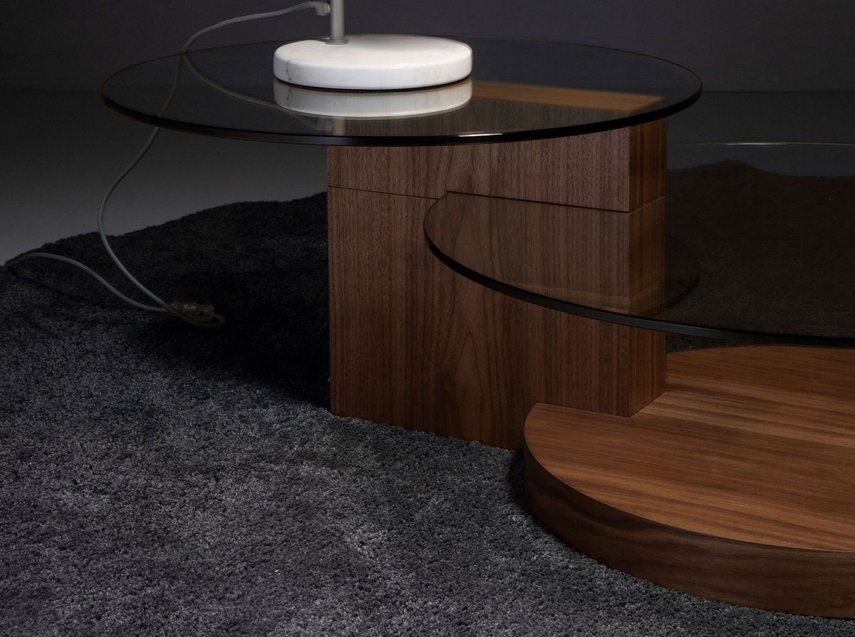 طاولة مقهى مستديرة من الزجاج المقوى والجوز موديل 2019 من Angel Cerdá S.L. طاولة مقهى مستديرة عصرية بسطح من الزجاج المقوى وقوائم خشبية مكسوة بقشرة جوز طبيعي أصلية. قطعة بتصميم بسيط لكن أصلي ستضفي لمسة فريدة وشخصية. مقاسات المنتج: 120 × 80 × 38 سم.