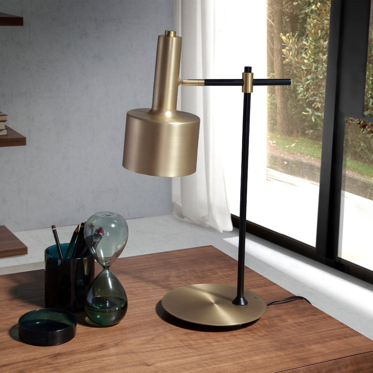 - This luminaire will add a modern touch to any room. Its modern design and matt gold aluminium finish offers the best combination of style and practicality.- Versatile and functional in design thanks to its adjustable shade, it allows it to fit in with the latest trends in decoration.- All our products are manufactured with materials of the highest quality, being a guarantee of durable and functional furniture.- The design of this lamp made of matt finish gold-coloured aluminium with a black stainless steel body is ideal for transmitting your most elegant and sophisticated character and personality.- Due to its dimensions and its adjustable lampshade, this modern design table lamp will be the ideal piece to illuminate your home office.