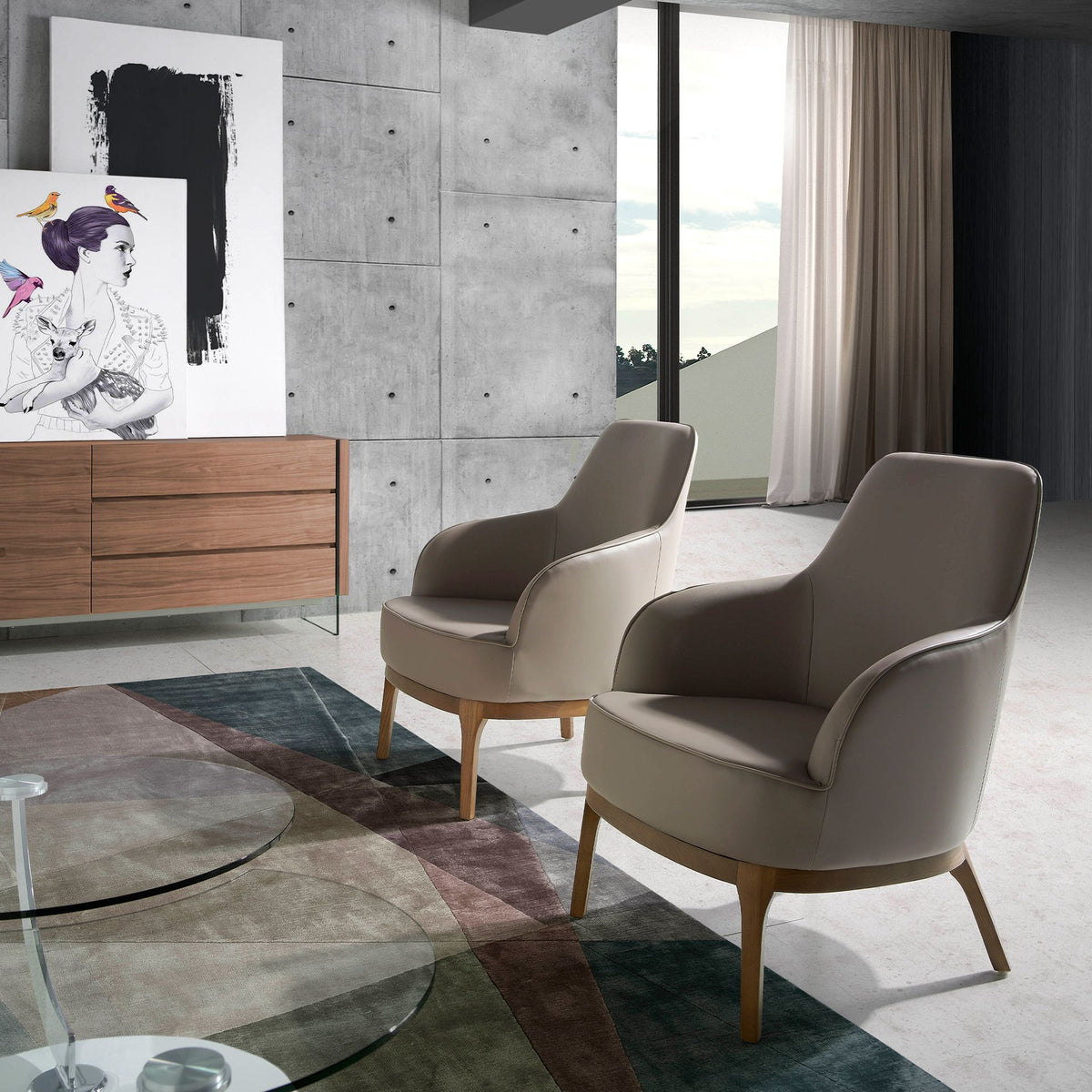 Our collection of armchairsexudes comfort and style. A wide variety ofmodern design armchairswith the highest quality finishes and a totally functional character.Angel Cerdá's furnitureis fully designed to enjoy and add a touch of style to any space.Armchairs, relax armchairs, swivel armchairs or rocking chairs, whatever the piece you need, you will find the ideal option for your moments of relaxation. Made with noble materials, ourarmchairsare an essential element to turn your living room, reading area or bedroom into a versatile and decorative environment, as well as practical for your daily life. Thismodern design armchair upholstered in leatherette by Angel Cerdácombines the unique and personal style of the brand, as well as the greatest comfort and stability, thanks to the soft upholstery and the original structure of the legs. A piece of design that you will not want to be missing in your home.